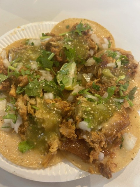 この日はCarnitas(豚肉をオレンジやスパイスで煮てほろほろにしたもの)オンリーの日。私が一番好きなタコスの種類です。