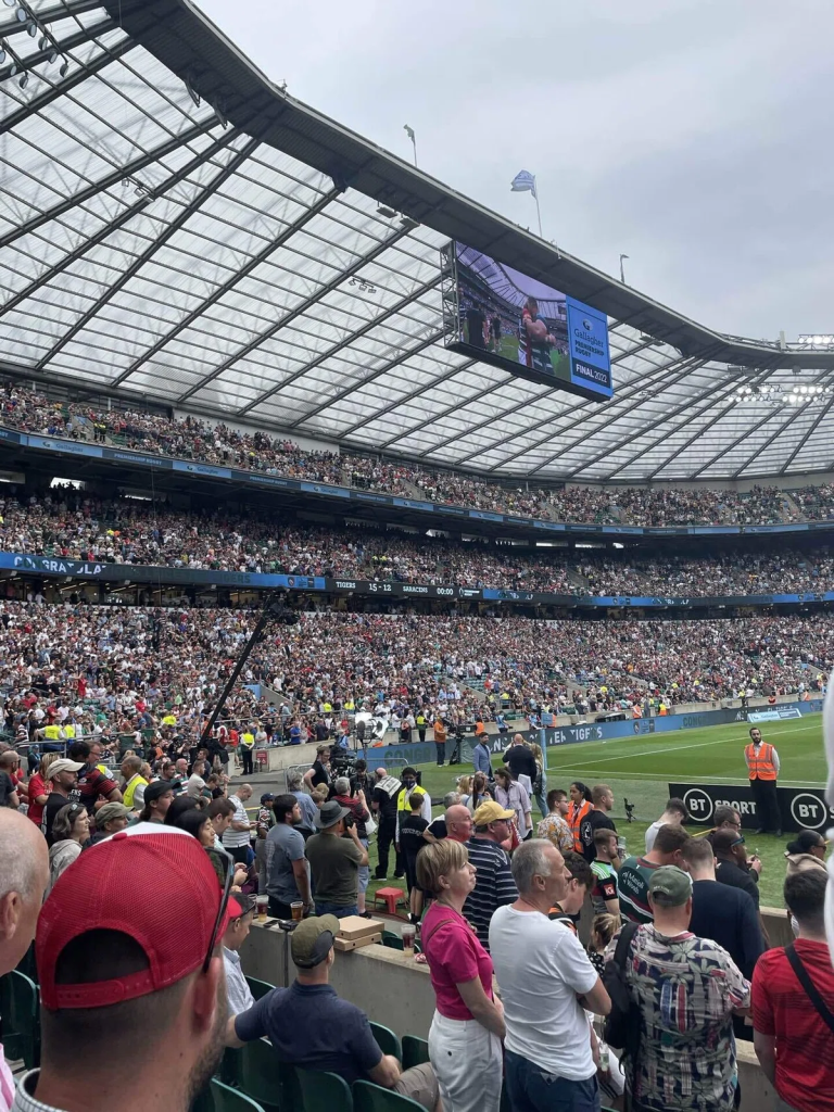 また会場はラグビーの聖地とも呼ばれているトゥイッケナムスタジアムです。収容人数は約8万人で今回の試合は見る限りではほぼ満席!駅からスタジアムまでは民家のような場所を歩いていくのですが、8万人が一気に移動するため花火大会の行道のような、絶対地元の人迷惑してるやんってくらいの大行進でした。なのでトゥイッケナム駅で知人と待ち合わせしていましたが、あまりの人にお互いを見つけるのに20分以上かかったので一緒に行くことをお勧めします!