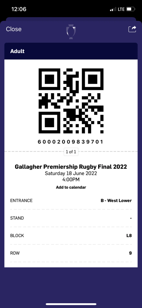 私が観戦した試合はなんとプレミアシップラグビーの最終戦で、チケットの値段は座席ごとに異なりますが一番安いチケットで(39ポンド)6000円から、一番高いチケットは(99ポンド)16000円ほどでした。私はせっかく見に行くのであれば一番高いもので22メートルラインに近いところがいい!と思い、カテゴリー1の9列目の席を選択しました。値段は最高峰リーグの最終戦にしてはお得なのかな?なぜなら7月に国立競技場で観戦した日本代表vsフランス戦のチケットは2階席でかなり離れている席でも16000円以上とかなりの額!